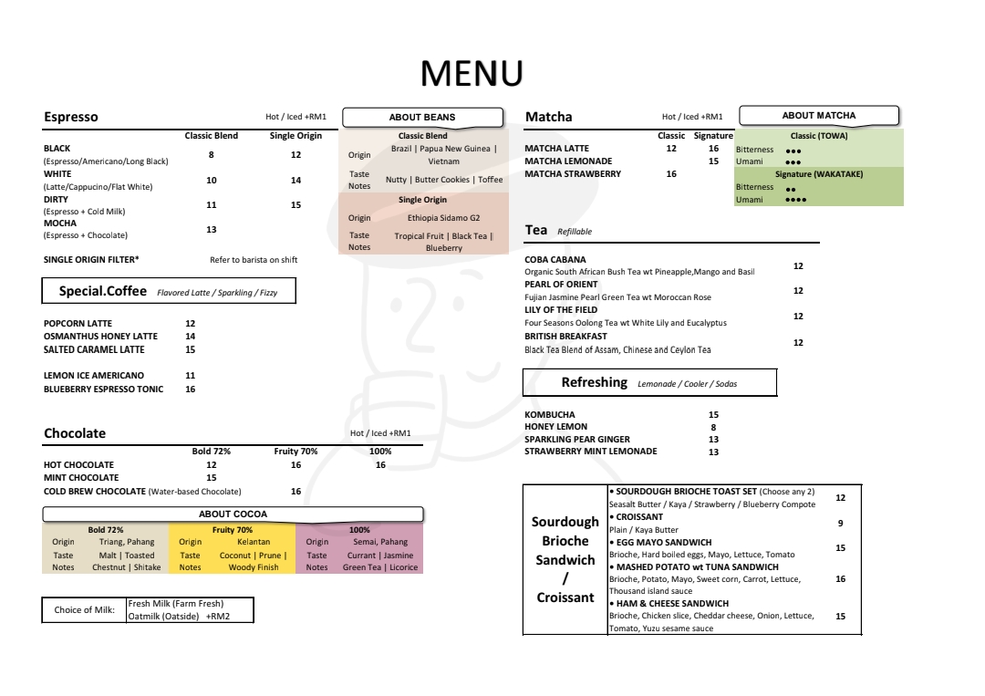 Two Fold Coffee - PJ Kelana Jaya Menu